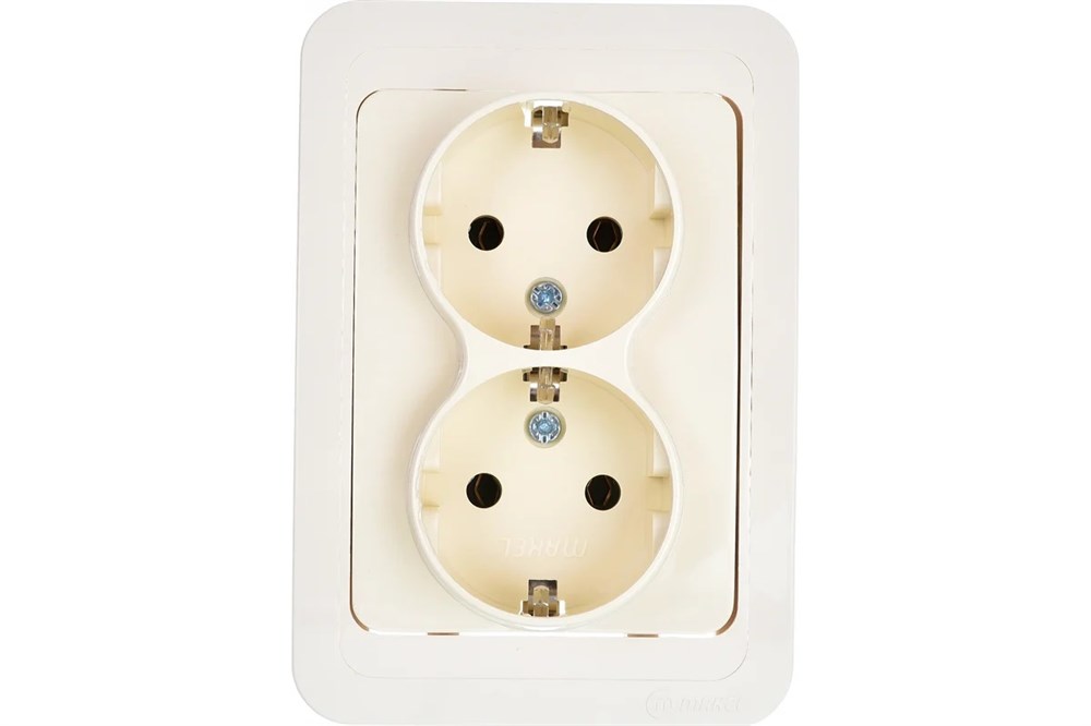 Розетка MAKEL Mimoza 25082, двухместная, встраиваемая, кремовая, с заземлением
