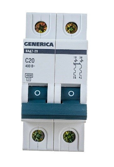 Выключатель автоматический GENERICA ВА 47-29, двухполюсной 2Р, 20А, тип С