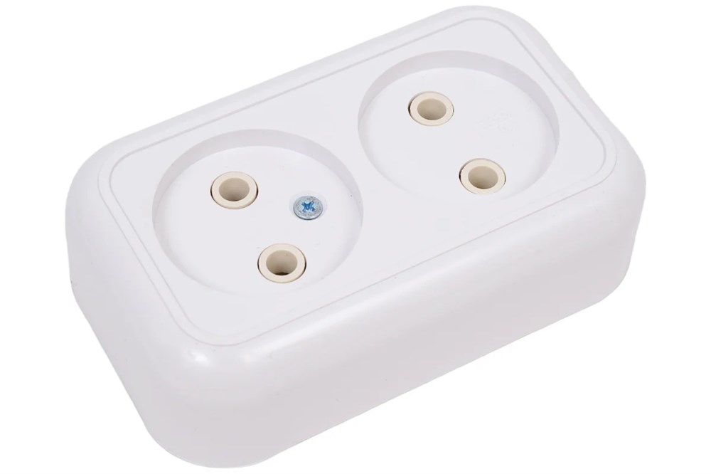 Розетка КУНЦЕВО-ЭЛЕКТРО Валентина РС10-382, двухместная, накладная, белая, без заземления