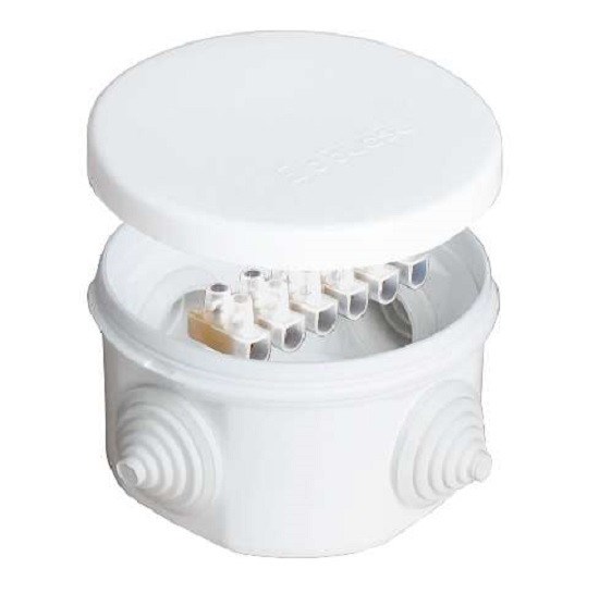 Коробка распределительная предназначена для открытого монтажа и используется для разветвления проводов и кабелей, а также для скрытия и дополнительной защиты мест коммутации. Коробки для открытого монтажа используются как часть системы электрической канализации, состоящей из жестких и гофрированных труб.