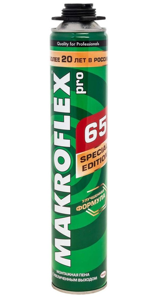 Makroflex 65 PRO - монтажная пена с повышенным на 35 % по сравнению с обычными пенами под пистолет выходом. Проста в употреблении, наносится при помощи специального аппликатора. Пена монтажная Makroflex обладает превосходной адгезией к большинству строительных материалов, таких как древесина, бетон, камень, металлы и др. Изделие не содержит хлор-фтор-углеродных пропеллентов.