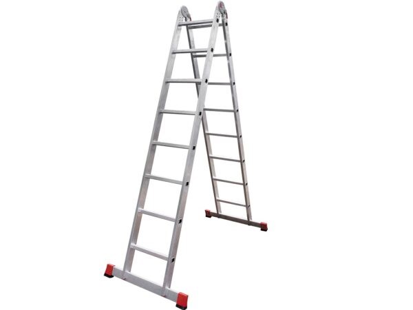 Лестница универсальная, двухсекционная, 2х8 ступеней, высота 2.3-3.95м, алюминиевая