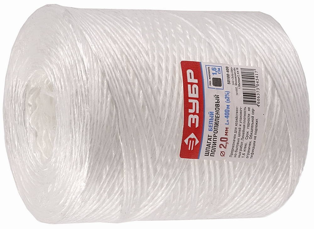 Шпагат ЗУБР полипропиленовый 1,6мм*400 м 1,0ктек