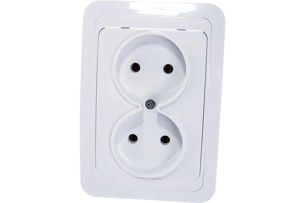 Розетка MAKEL Mimoza 12017, двухместная, встраиваемая, белая, без заземления