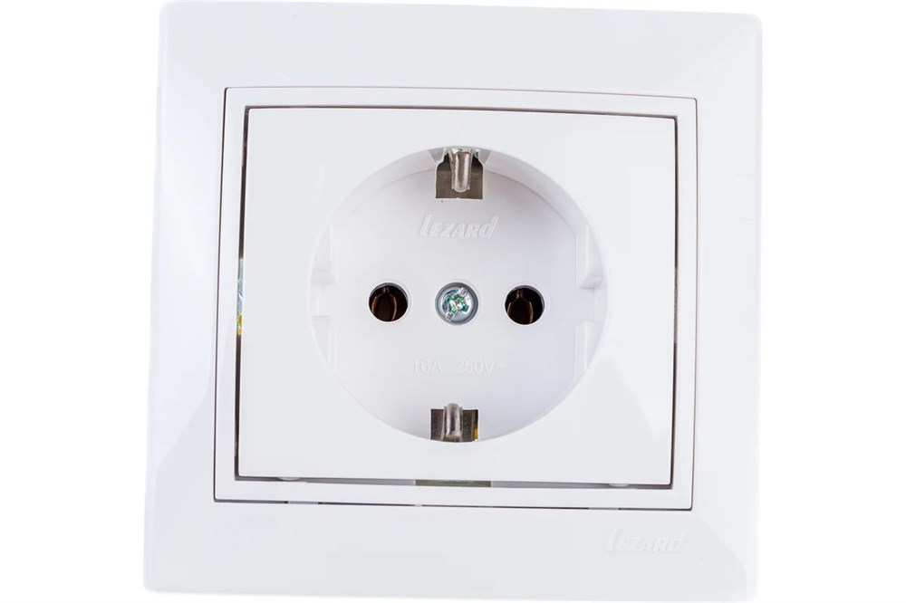 Розетка LEZARD MIRA 701-0202-122, одноместная, встраиваемая, белая, с заземлением