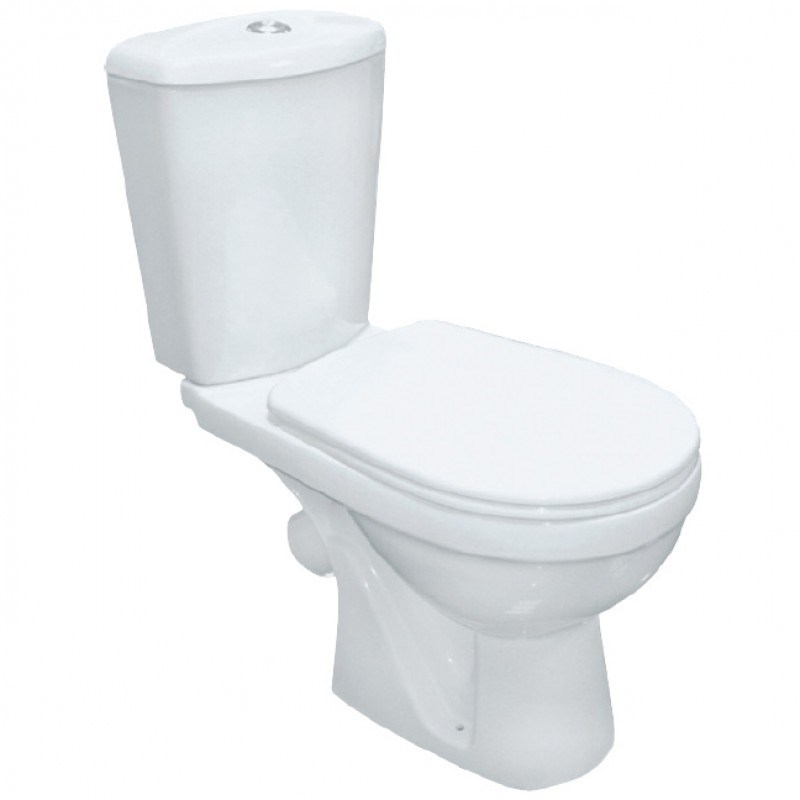 Унитаз-компакт Rosa КОМФОРТ, нижняя подводка, косой выпуск, двухрежимная арматура, сиденье полипропилен, белый