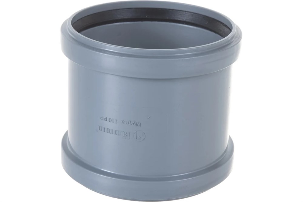 Предназначена для соединения полипропиленовых канализационных труб системы внутренней канализации одного диаметра не имеющих раструб или в случае ремонта трубопровода. Герметичность соединения обеспечивается резиновыми однолепестковыми кольцами установленными в раструб муфты.