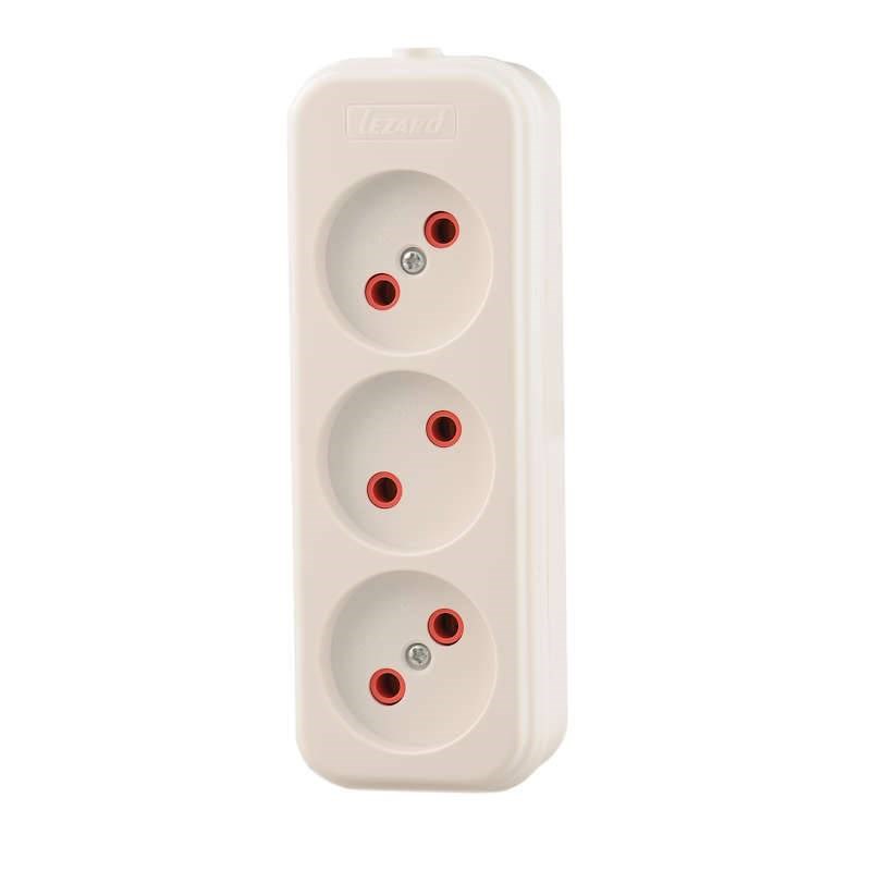 Колодка для удлинителя Lezard Lila, трехместная, 10А, 220-230В, IP20, без заземления, белая