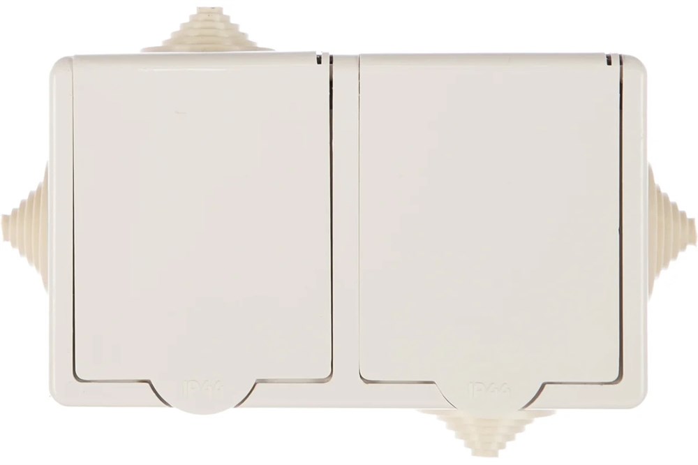 Розетка стационарная КУНЦЕВО-ЭЛЕКТРО РА16-759, двухместная, 16А, 250В, IP44, накладная, белый, с заземлением, с защитной крышкой, брызгозащищенная