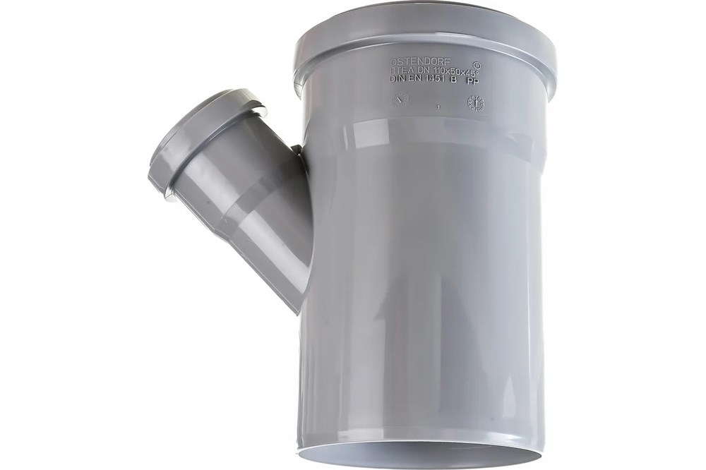 Тройник для внутренней канализации, 110х50мм, 45 градусов, полипропиленовый, серый