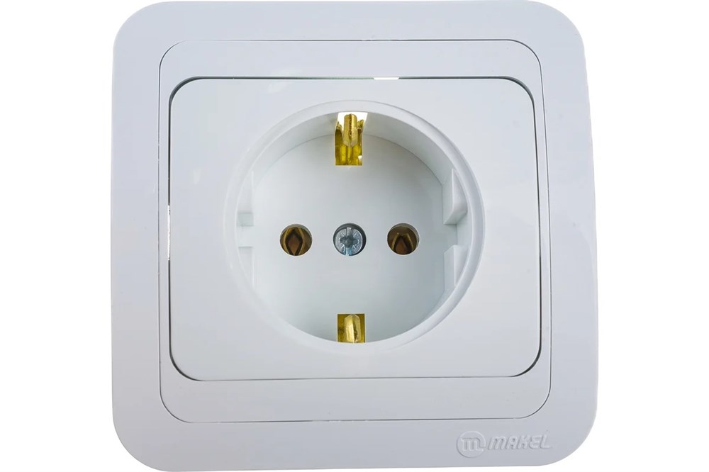 Розетка MAKEL Mimoza 12008, одноместная, встраиваемая, белая, с заземлением