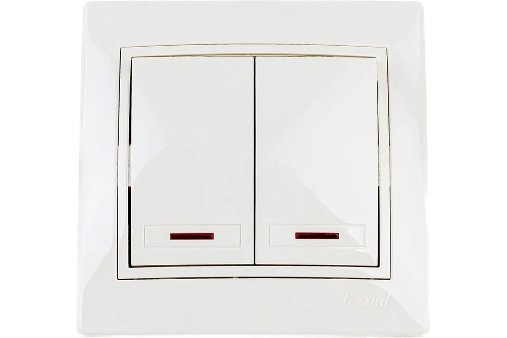 Выключатель LEZARD MIRA 701-0303-112, двухклавишный, встраиваемый, кремовый, с подсветкой