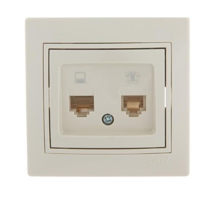 Розетка компьютерная+ телефонная Lezard Мира, двухместная, встраиваемая, RJ45 + RJ11, крем
