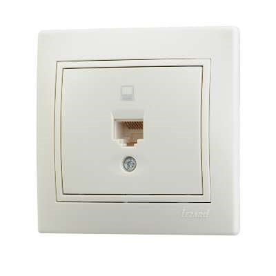 Розетка предназначена для подключения компьютерного сетевого кабеля через патч-корд. Изготовлена из высококачественного гладкого пластика, кремового цвета, декорирована рамкой. Монтируется на одном уровне с поверхностью стены.