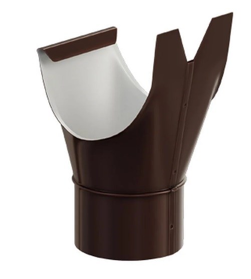 Воронка желоба водосточного выпускная, диаметр 95мм, оцинкованная сталь с покрытием, RAL 8017 коричневая