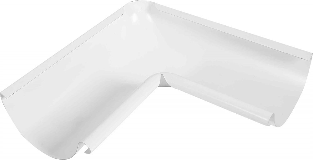 Угол желоба водосточного, диаметр 120мм, внутренний, оцинкованная сталь с покрытием, RAL 9003 белый