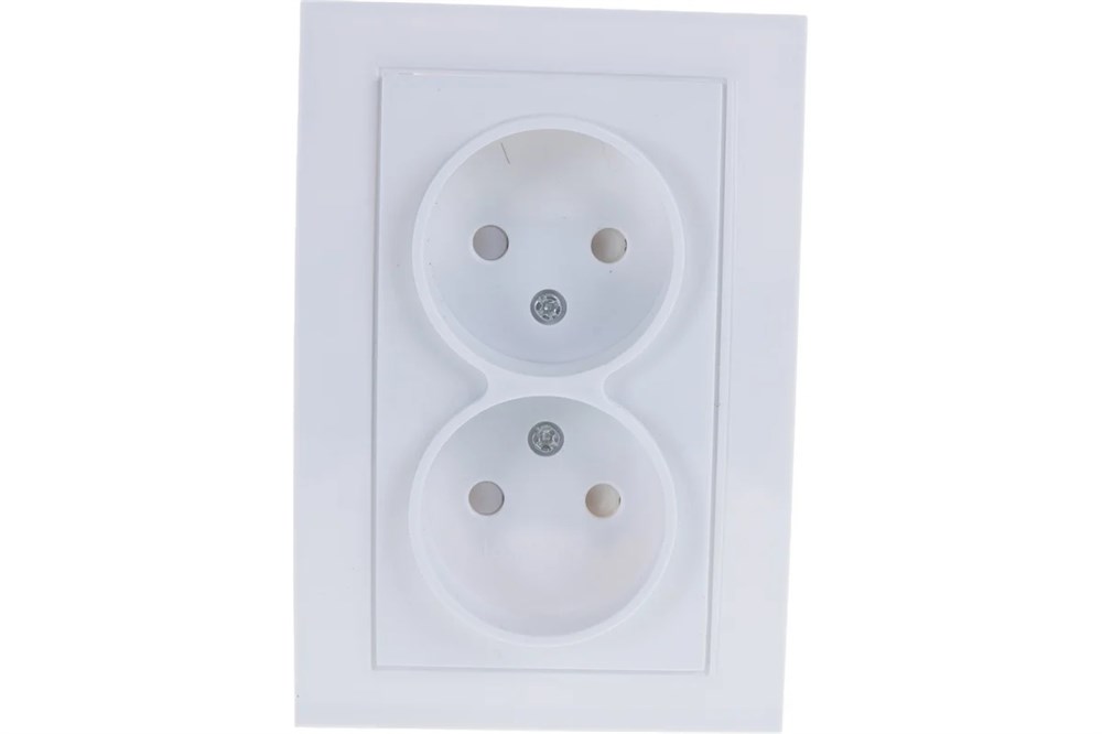 Двойная розетка без заземления, с защитными шторками проста в монтаже, широко используется для установки в помещениях бытового назначения. Наличие защитных шторок повышает степень электробезопасности.