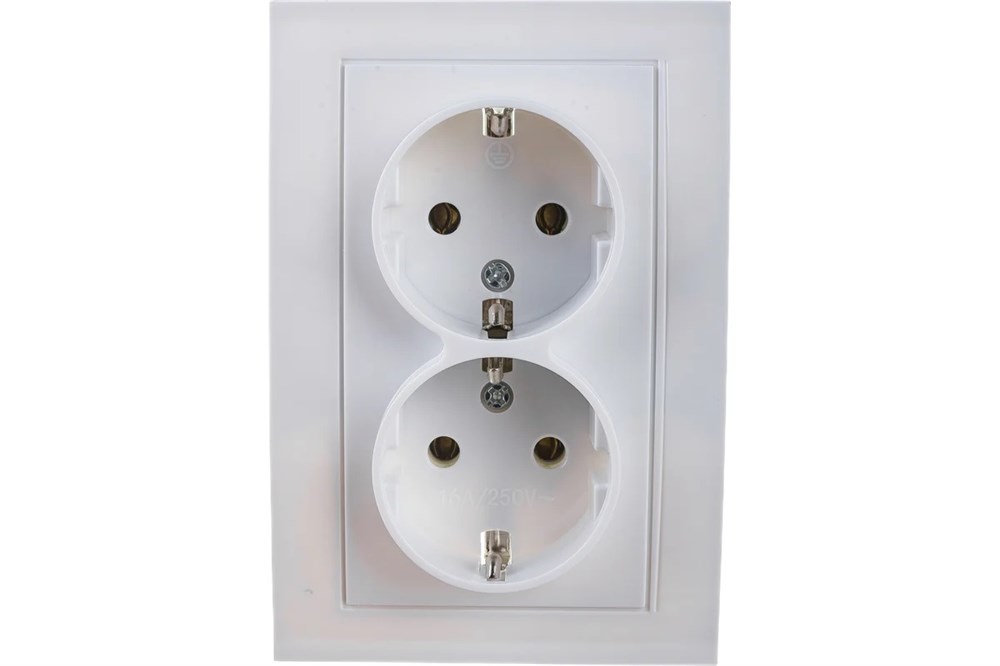 Розетка UNIVersal Бриллиант, двухместная, встраиваемая, белая, с заземлением, с защитными шторками