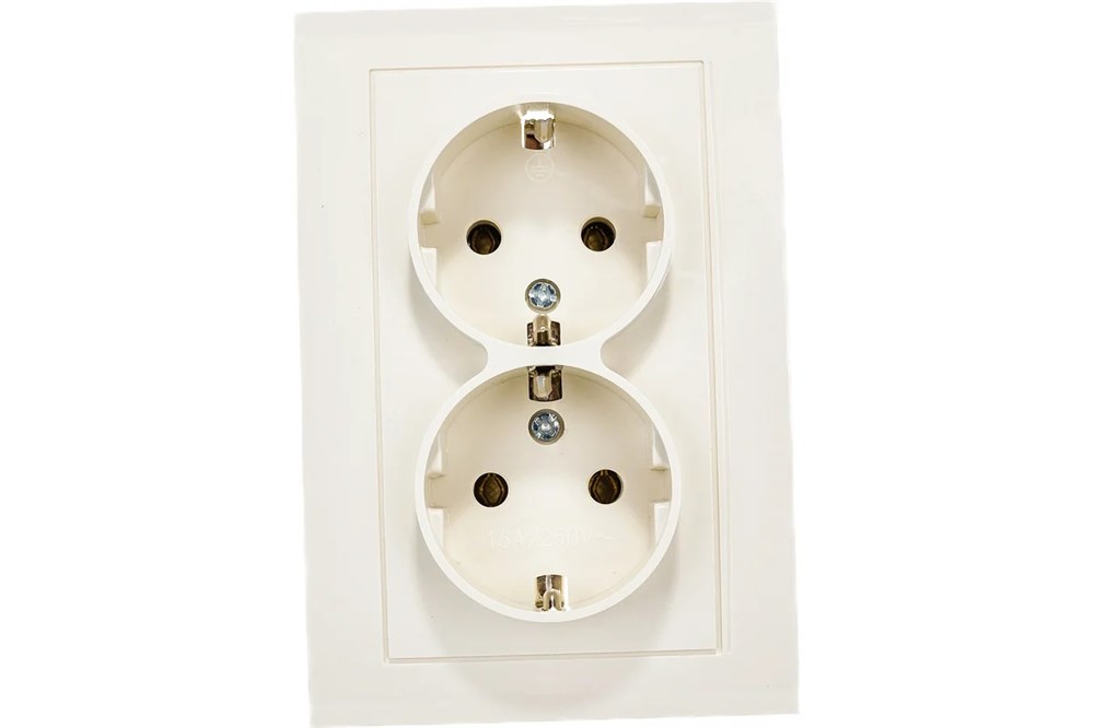 Розетка UNIVersal Бриллиант 7948752, двухместная, встраиваемая, слоновая кость, с заземлением