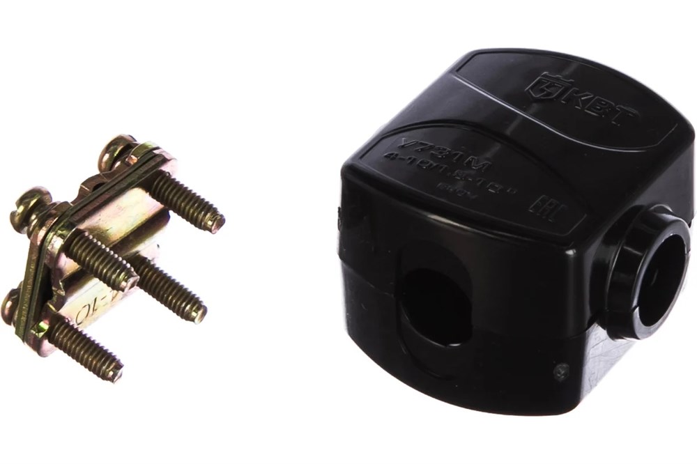 Сжим ответвительный предназначен для выполнения ответвлений медных и алюмиевых проводов от магистральных проводников напряжением до 690В (без их разрезания) проводниками из тех же материалов. Материал корпуса - поликарбонат, не поддерживающий горение. Материал контактной части - анодированная сталь. Сердечник представляет собой профилированные под типоразмер кабеля плашки, затягивающиеся болтами. Магистраль и ответвление могут быть представлены алюминиевыми или медными проводами, либо их комбинацией.