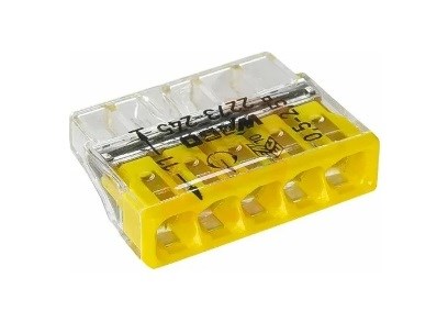 Соединительная клемма для быстрого монтажа WAGO 2273-245 служит для подключения 5 проводов одновременно в распределительной коробке.