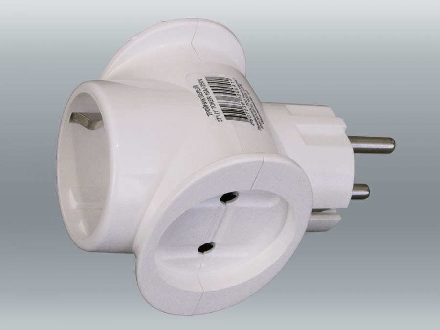 Разветвитель/тройник TOKER 3T1, трехместный, с заземлением, т-образный, белый