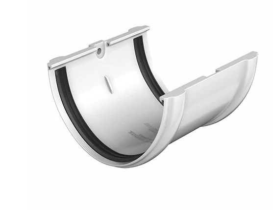 Соединитель желоба водосточного, пластиковый ПВХ, белый