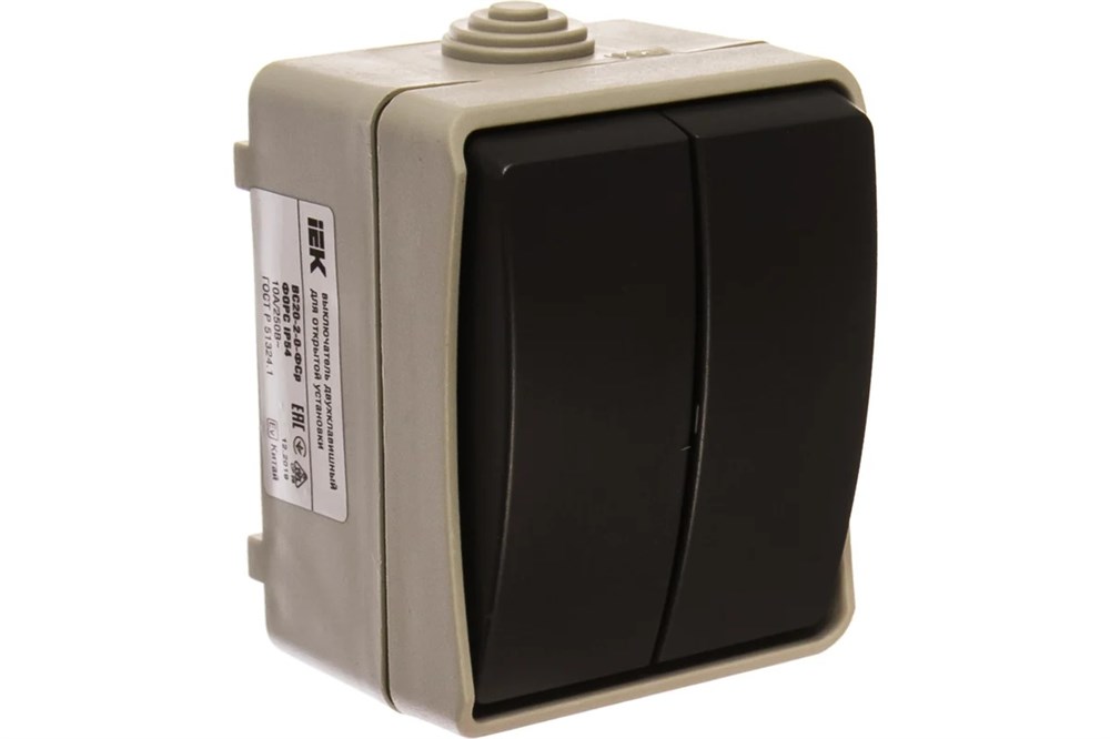 Выключатель IEK ОП Форс 10А IP54 ВС20-2-0-ФСр, двухклавишный, накладной, серый