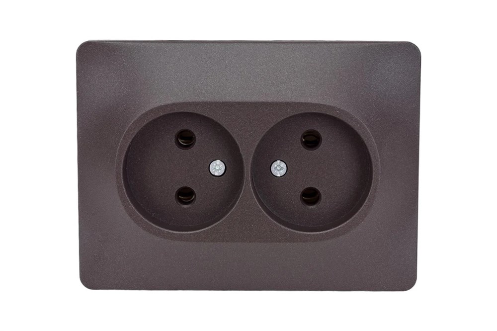 Розетка SYSTEM ELECTRIC Glossa GSL000820, двухместная, встраиваемая, шоколад, без заземления