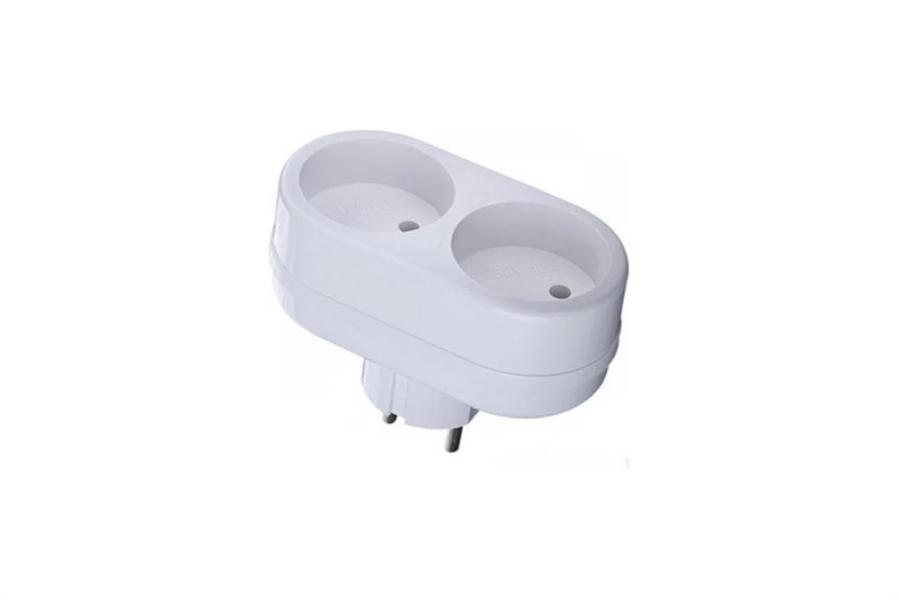 Разветвитель/тройник TOKER 2T, двухместный, без заземления, плоский, белый