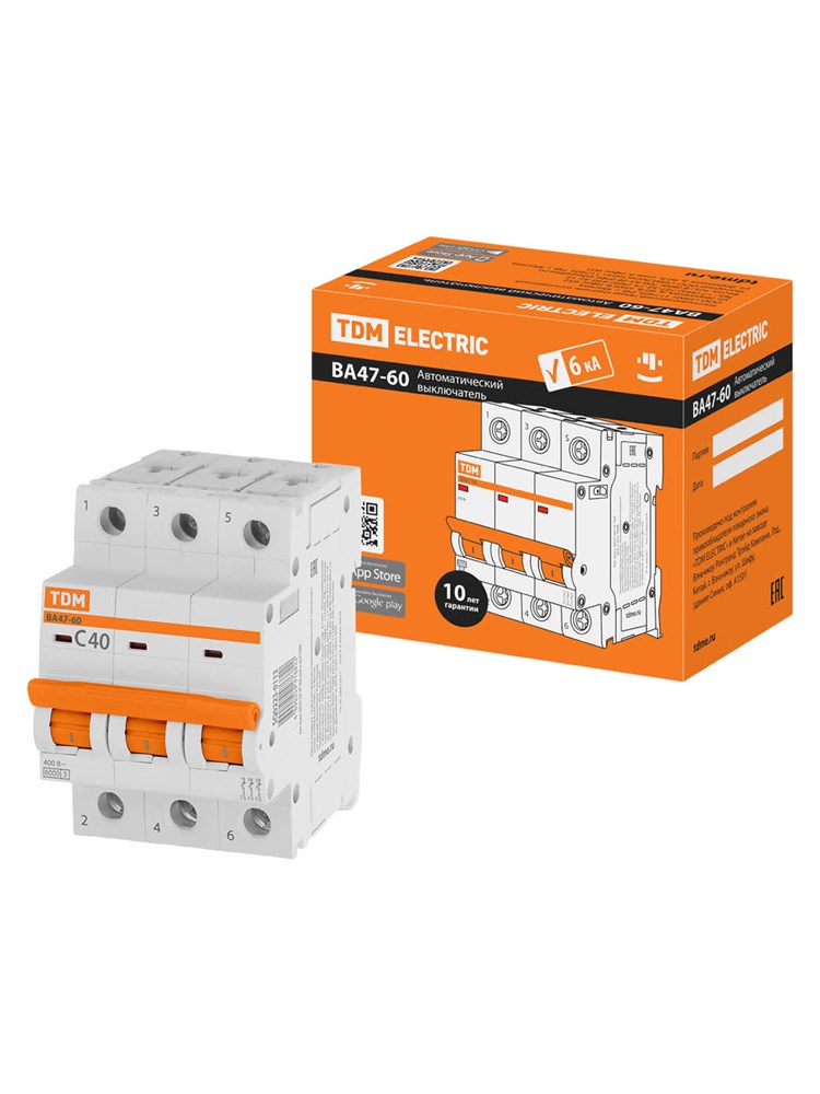 Выключатель автоматический TDM ВА 47-29, трехполюсный 3Р, 40А, 4.5кА, тип С