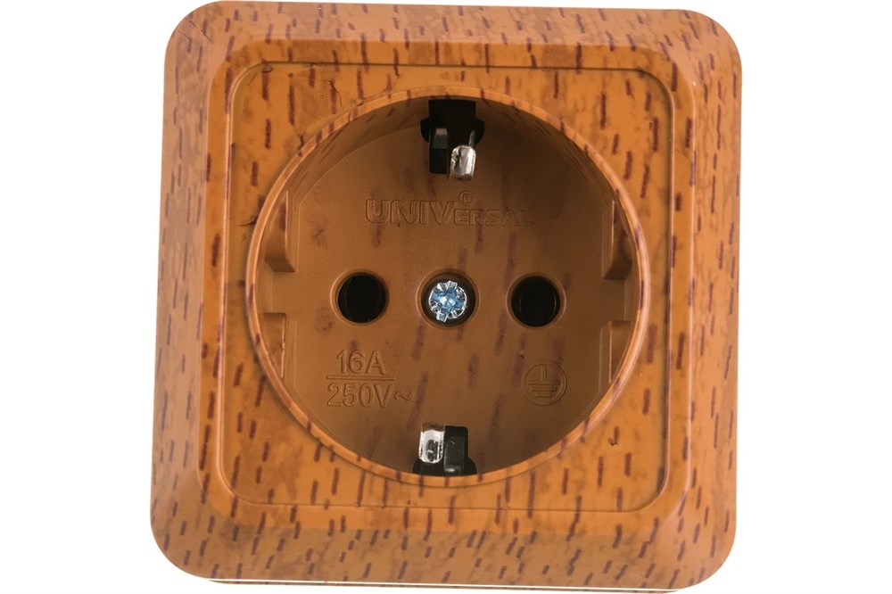 Розетка UNIVersal Олимп, одноместная, накладная, бук, с заземлением