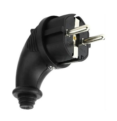 Вилка угловая Lezard 106-0400-0108/108, 2Р+РЕ, 16А, 220-240В, IP20, с заземлением, каучук, черная