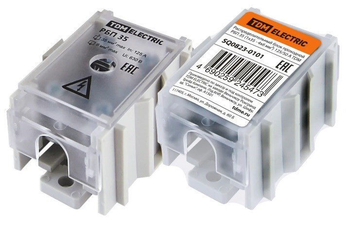 Блок распределительный на DIN-рейку TDM РБП 35, 1х35-4x6мм2, 125/50А, проходной