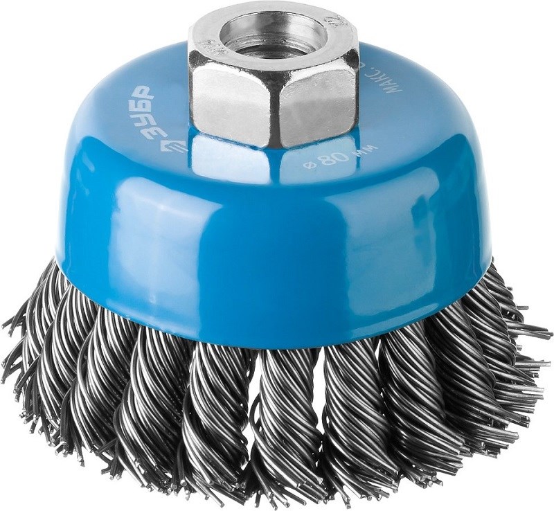 Щетка-крацовка чашечная ЗУБР ЭКСПЕРТ 35277-080 для УШМ, 80мм, М14, плетеная проволока 0.8мм