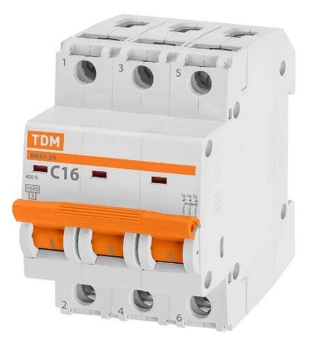 Выключатель автоматический TDM ВА 47-29, трехполюсный 3Р, 16А, 4.5кА, тип С