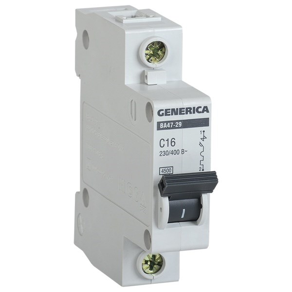 Выключатель автоматический GENERICA ВА 47-29, однополюсной 1Р, 25А, тип С