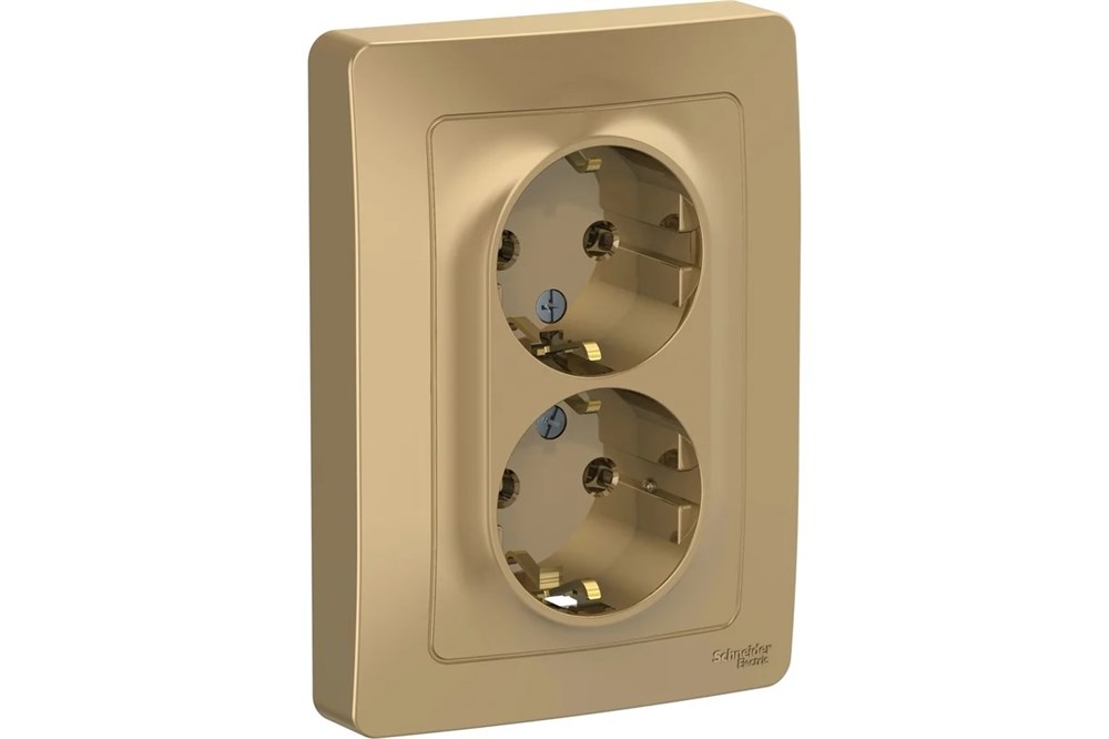Розетка SYSTEM ELECTRIC Blanca ВLNRS001024, двухместная, встраиваемая, титан, с заземлением