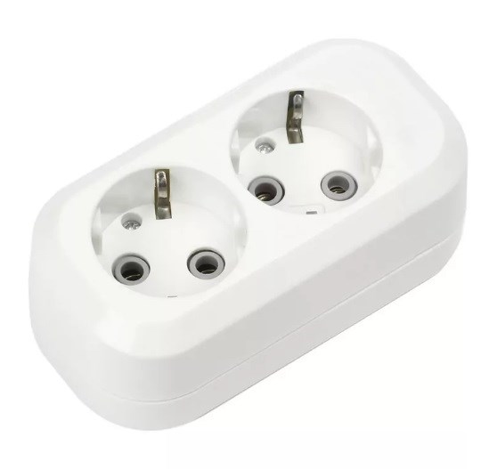 Колодка для удлинителя Smartbuy SBE-16-2-00-Z, двухместная, 16А, 250В, IP20, с заземлением, АБС-пластик, белая