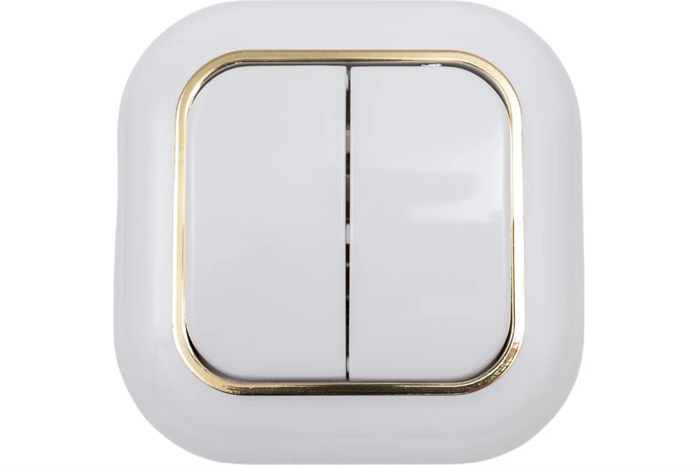 Выключатель КУНЦЕВО-ЭЛЕКТРО Валентина С56-034, двухклавишный, встраиваемый, белый с золотой вставкой