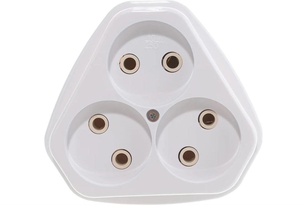 Розетка КУНЦЕВО-ЭЛЕКТРО РА10-387, трехместная, накладная, белая, без заземления, треугольная