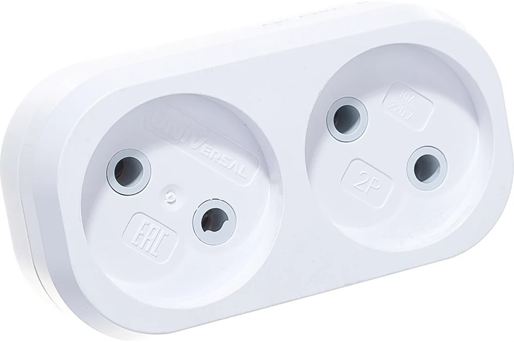 Разветвитель/тройник UNIVersal А202, двухместный, без заземления, плоский, белый