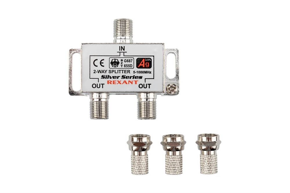 Разветвитель (делитель) антенный, REXANT 05-6101, на 2 выхода, под F-разъем+ 3 F-разъема в комплекте