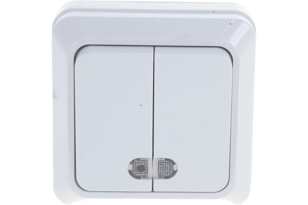 Выключатель IN HOME Boletto 7123, двухклавишный, накладной, белый, с подсветкой