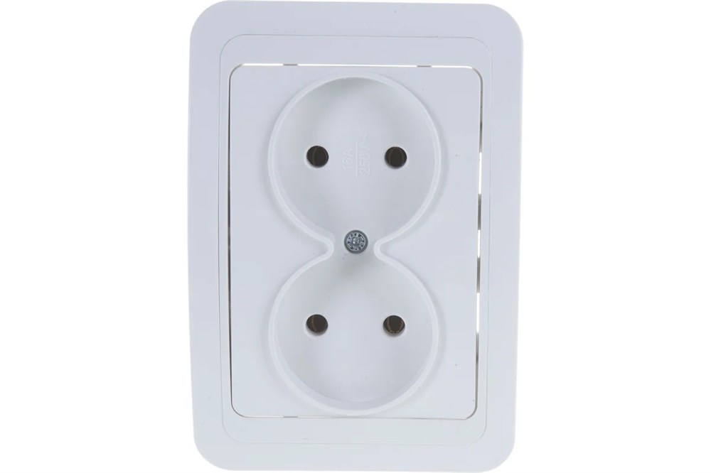 Розетка IN HOME Classico 2102, двухместная, встраиваемая, белая, без заземления