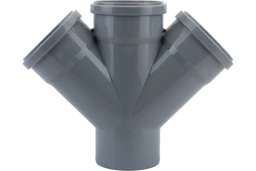 Предназначена для монтажа двух ответвлений одного диаметра от основных канализационных стояков, расположенных под углом 45°, транспортирующих стоки внутри жилых, административных, производственных зданий. Используется для систем хозяйственно-бытовой канализации в жилых, административных и промышленных зданиях, а также для систем внутренних водостоков для зданий высотой до 10 метров.