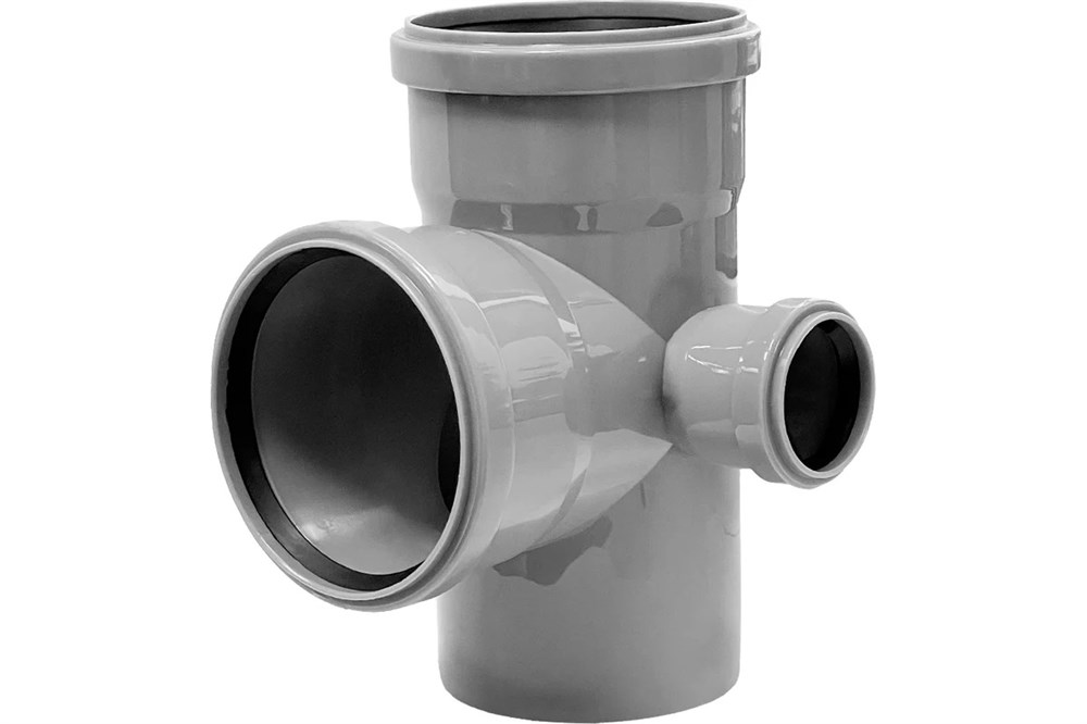 Двухплоскостная крестовина левая предназначена для монтажа двух ответвлений одного диаметра от основных канализационных стояков расположенных в двух плоскостях, транспортирующих стоки внутри жилых, административных, производственных зданий. Используется для систем хозяйственно-бытовой канализации в жилых, административных и промышленных зданиях, а также для систем внутренних водостоков для зданий высотой до 10 метров.