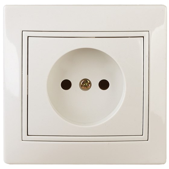 Розетка выполнена из керамики, укомплектована одноместной рамкой, оснащена винтовыми клеммами. Клеммы с двумя отверстиями позволяют соединять соседние розетки шлейфом. Установка в подрозетник производится как на монтажные лапки, так и на винты.
