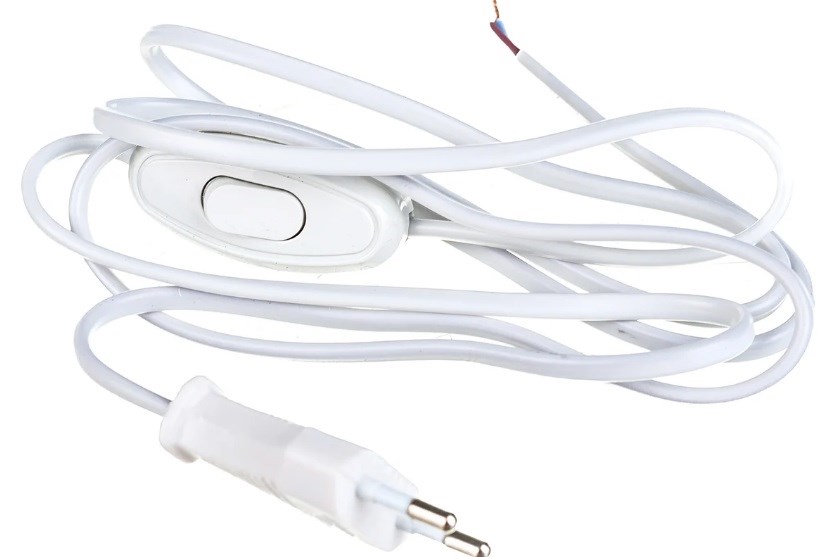Шнур для бра UNIVersal А1060, ШВВП-ВП 2х0.75мм, 2.5А, 220/230В, IP20, 1.7м, с проходным выключателем, белый