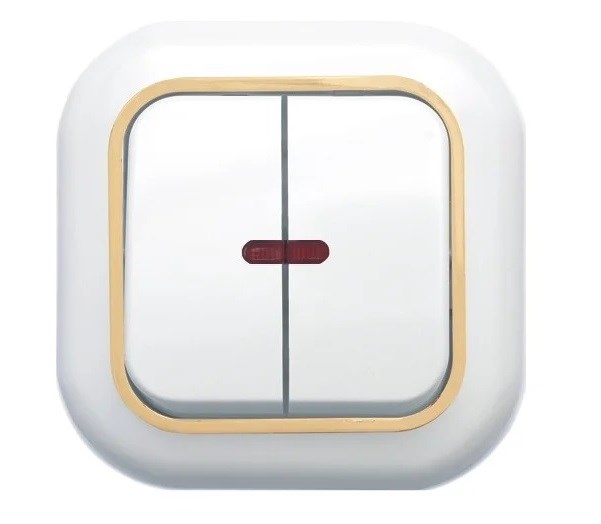 Выключатель КУНЦЕВО-ЭЛЕКТРО Валентина С56-175, двухклавишный, встраиваемый, белый с золотой вставкой, с подсветкой
